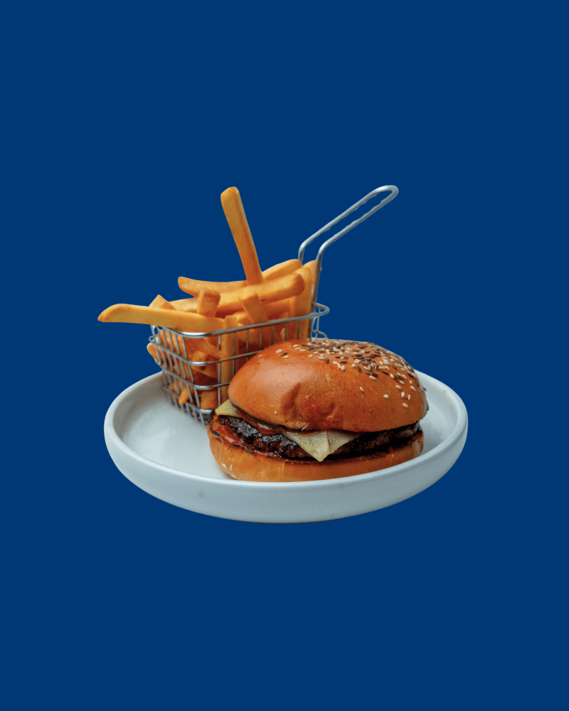 Angus beef patty with lettuce, tomato, pickle ,Smokey cheese, onion jam and burger sauce on milk bun