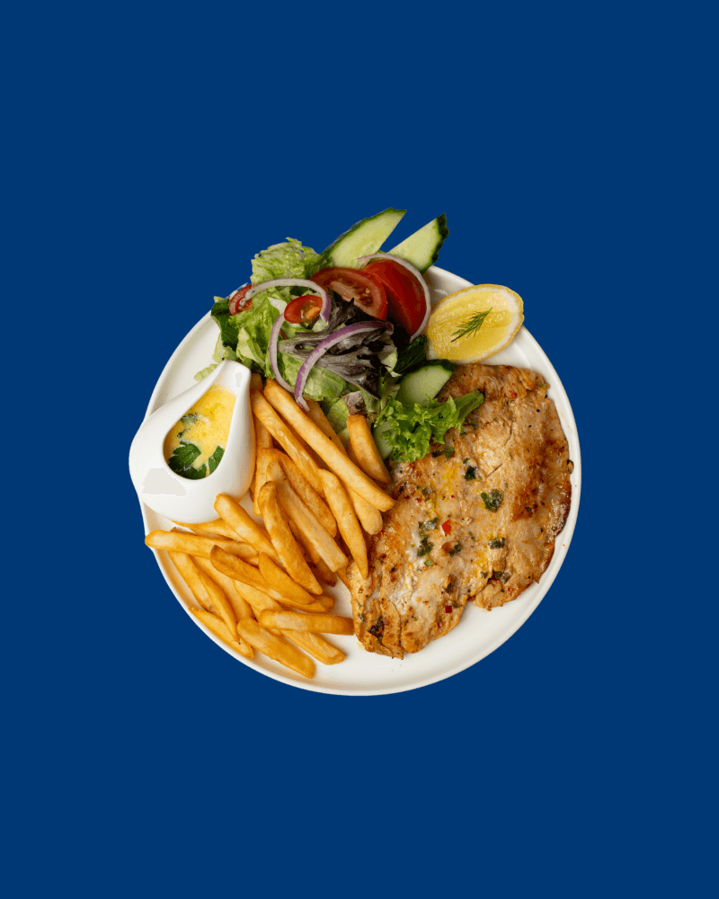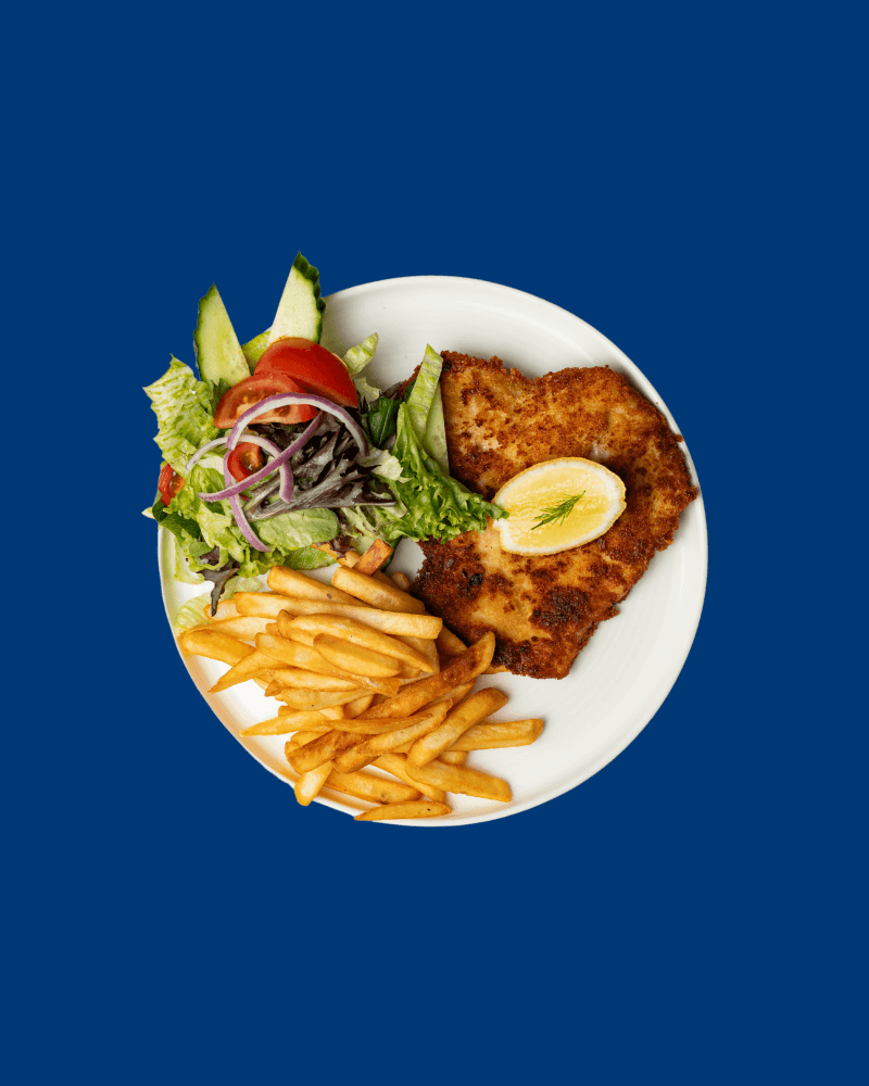 Inside The Turkish Roll Bread Chicken Schnitzel, Baby Cos Lettuce, Tomato And Slice Cheese