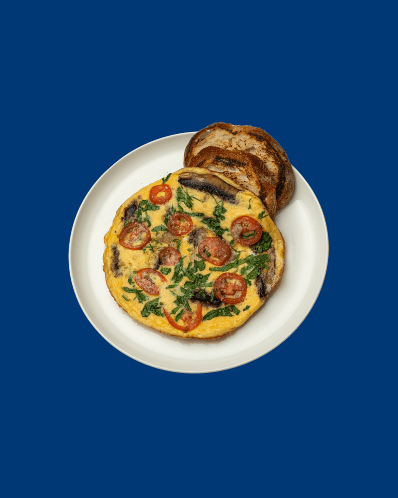 1x Toast, cherry tomatoes, spinach, mushrooms and cheese.