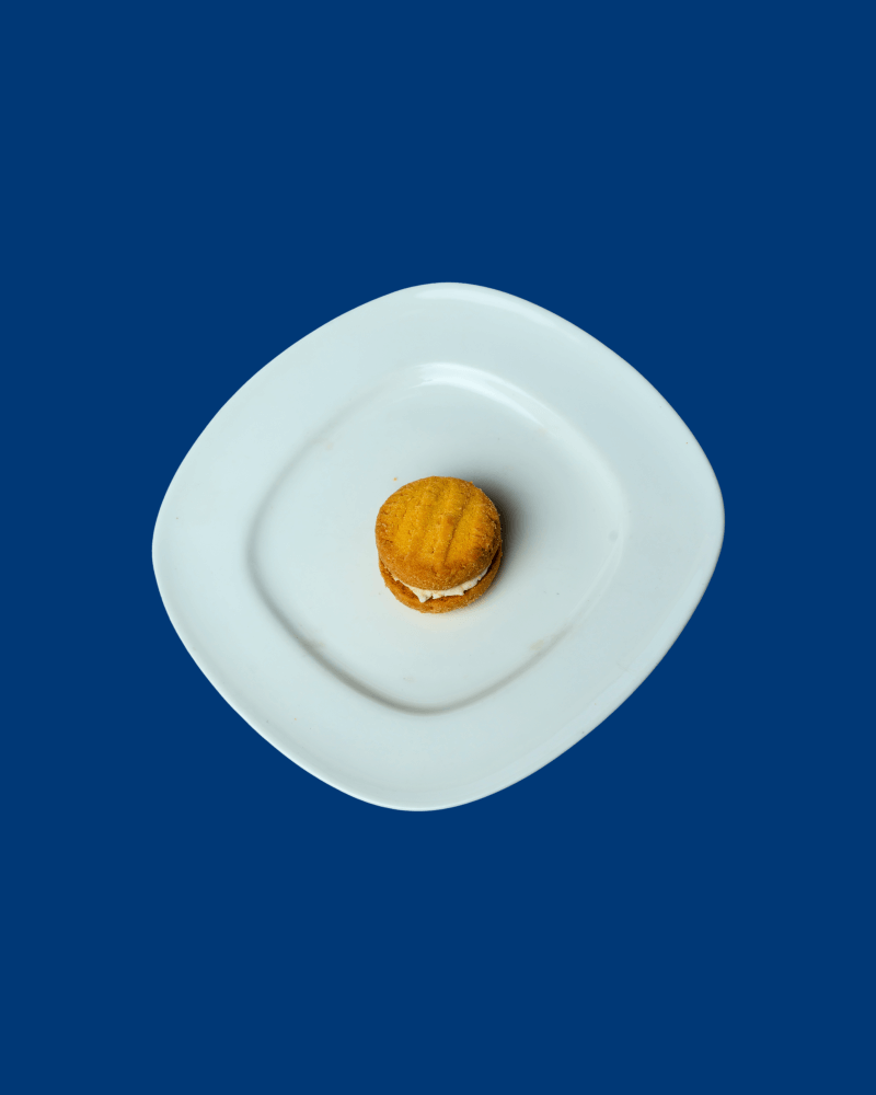 Crushed biscoff, biscoff sauce, vanilla ice cream dusted with icing sugar on buttermilk pancake.