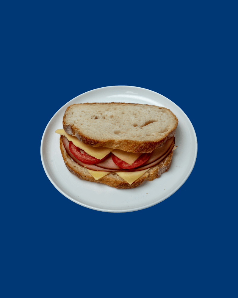 Sliced ham, tomatoes and melted cheese sandwiched between layers of crispy, golden-brown bread, toasted to perfection.